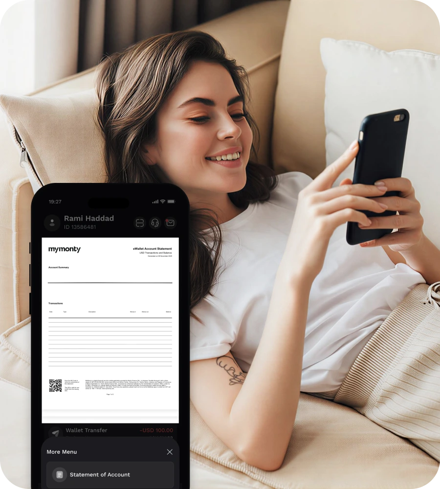 Monty Finance SAL is registered in Lebanon (Beirut Register of Commerce No. 73215), Gefinor Center, Clemenceau St., Hamra, Beirut, Lebanon and is authorized by the Central Bank of Lebanon (“BDL”) to operate as a financial institution (BDL Decision no. 23/6/98 dated 02 February 1998) and eWallet service provider (BDL Decision no. 30/23/23 dated 21 July 23). Monty Finance SAL is listed on the BDL List of Financial Institutions under no. 23.
